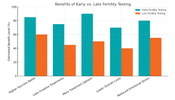 Testing is also recommended if either partner has a history of irregular periods, chemotherapy, STIs, or suspected hormonal issues (low testosterone, progesterone, AMH). Both partners should undergo evaluation to ensure a comprehensive understanding of fertility factors.